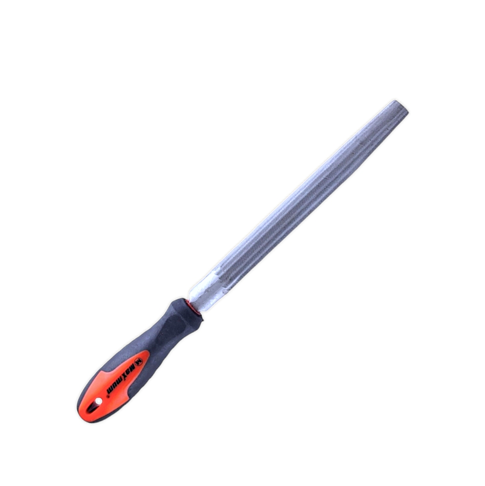 Напильник полукруглый с двойной перекрестной насечкой. Площадь сечения напильника уменьшается от середины к носу.