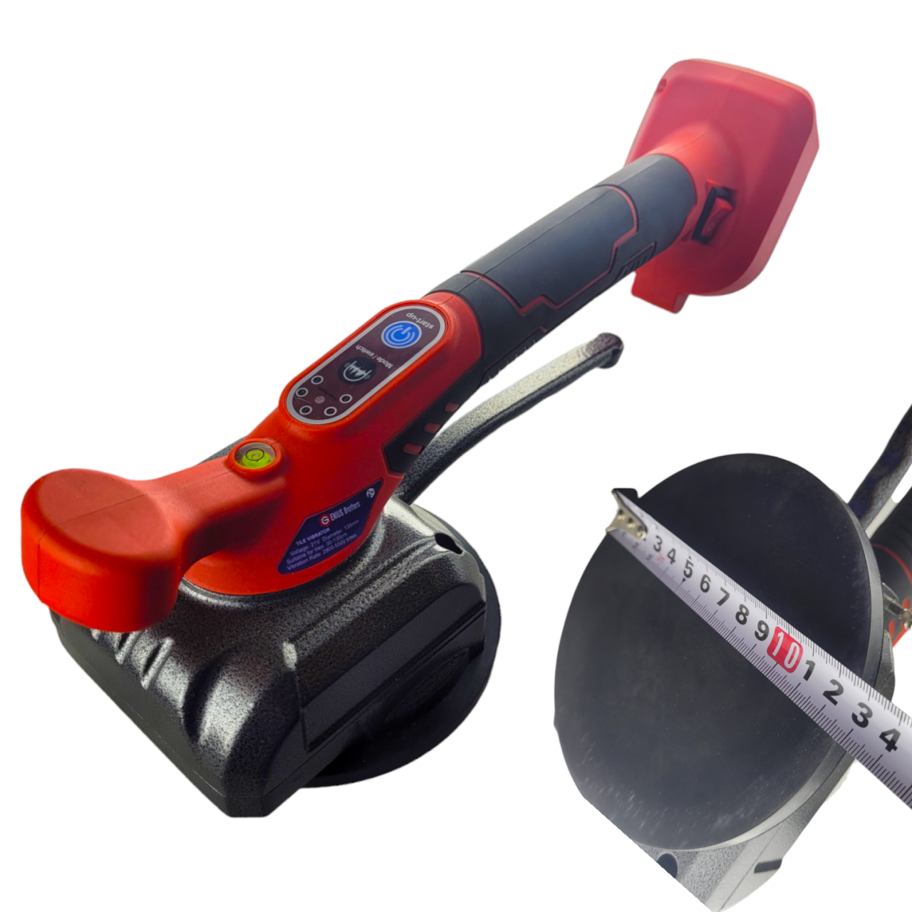 Виброприсоска для укладки и осаживания плитки поставляется в комплекте с 2-мя литиевыми аккумуляторами на 38 V. Это устройство 2 в 1: присоска и минивибратор. Поглощающая способность 100 кг. Мощная резиновая присоска диаметром 125 мм разработана для перемещения и подъёма плитки даже с небольшой шероховатой поверхностью или рельефом.
