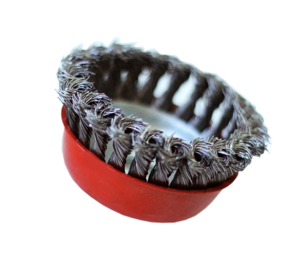 Щетка-крацовка чашечная для УШМ 150 мм предназначена для зачистки поверхностей от лакокрасочных покрытий, ржавчины, окалины, различных стойких загрязнений, а также для зачистки сварных швов. Щетка изготовлена из стальной жгутированной проволоки. Благодаря еще более высокой жесткости сплетенного пучка и увеличенной толщине проволоки щетка обладает повышенным ресурсом. Каждая щетка-крацовка соответствует действующим стандартам качества и обеспечивает безопасную работу в указанном диапазоне оборотов до 3750 RPM. Диаметр проволоки 0.5 мм.