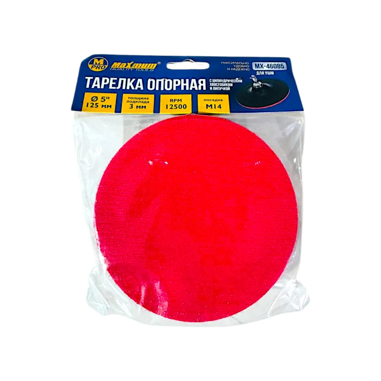 Тарелка опорная 8×125 мм для УШМ, с липучкой, цилиндрический хвостовик, "MAXIMUM" (Максимум)MX 46092
